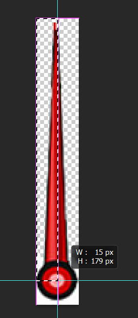 I have a needle that is 270 * 27 px, pivot is at X62/Y13. Outline is where it sits with 0 rotation.
